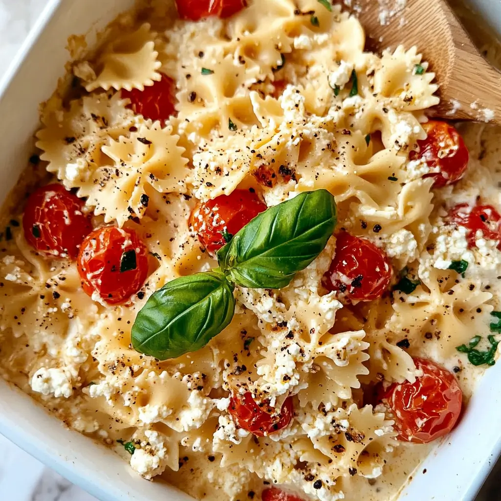 The simplest and most common way to serve this dish is as it is—warm, creamy, and straight from the baking dish. The feta and tomato sauce clings to the pasta beautifully, making every bite rich and flavorful.