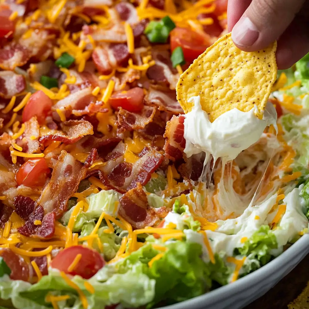 One of the best things about this recipe is its versatility. You can customize it to fit your taste—add avocado for extra creaminess, jalapeños for spice, or swap sour cream for Greek yogurt to make it lighter. No matter how you tweak it, the combination of crispy bacon, juicy tomatoes, fresh lettuce, and a creamy Ranch-flavored base will keep everyone coming back for more.