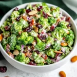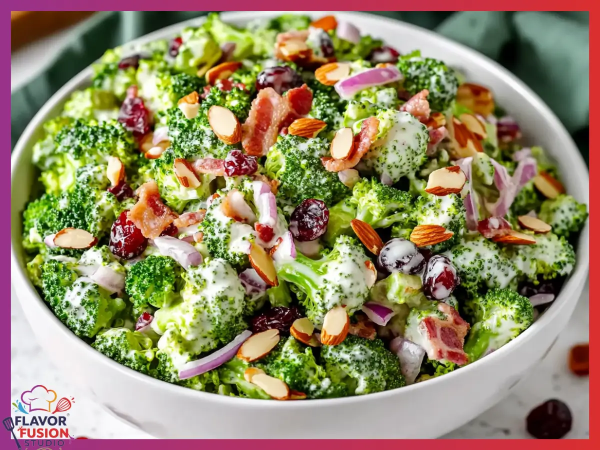 A crisp, creamy, and flavorful broccoli salad made with turkey bacon, dried cranberries, almonds, and a sweet tangy dressing. Perfect for gatherings or meal prep.