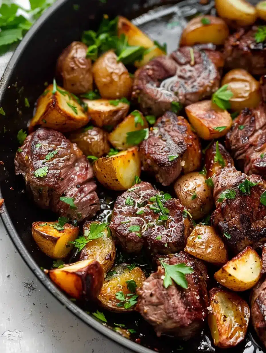 6. Combine Ingredients: Return the steak bites to the skillet with the potatoes. Toss everything together gently to coat in the garlic butter.
