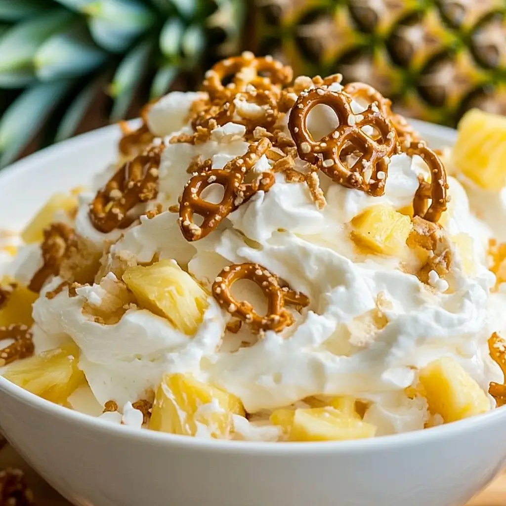 I first came across this recipe at a summer barbecue, where it quickly became the star of the dessert table. I had one bite and immediately needed to know how to make it. The combination of fluffy whipped topping, tangy pineapple, and crunchy pretzels was simply too good to pass up. Ever since then, it has been a staple at our family gatherings.