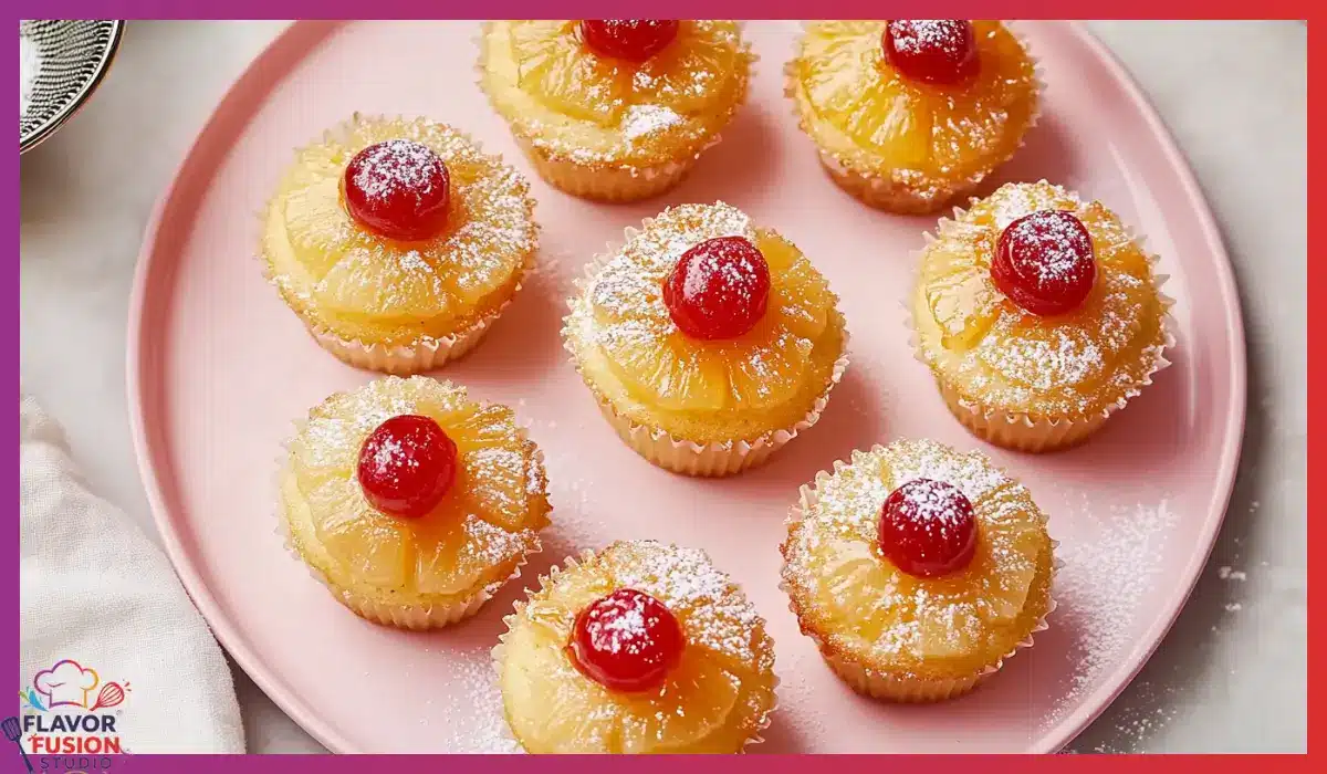 These mini Pineapple Upside-Down Cupcakes are soft, buttery, and topped with caramelized brown sugar, pineapple, and a cherry. A perfect bite-sized twist on the classic dessert!
