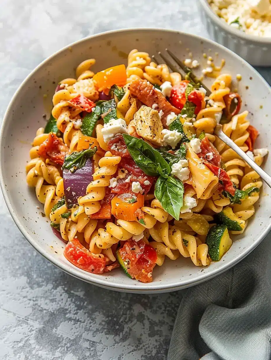 Roasted Veggie Pasta with Feta is a fantastic dish that brings together simplicity and flavor. It’s perfect for a quick weeknight dinner or an impressive meal for guests. The vibrant roasted vegetables paired with creamy feta create a delicious harmony that is sure to please everyone at the table. With its versatility and ease of preparation, this recipe is bound to become a staple in your culinary repertoire. Enjoy every bite!