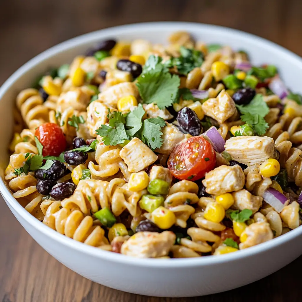 This easy Southwest Pasta Salad is packed with tender rotini, grilled chicken, black beans, corn, fresh veggies, and tossed in a smoky chipotle ranch dressing. It’s perfect for potlucks, BBQs, or make-ahead lunches!