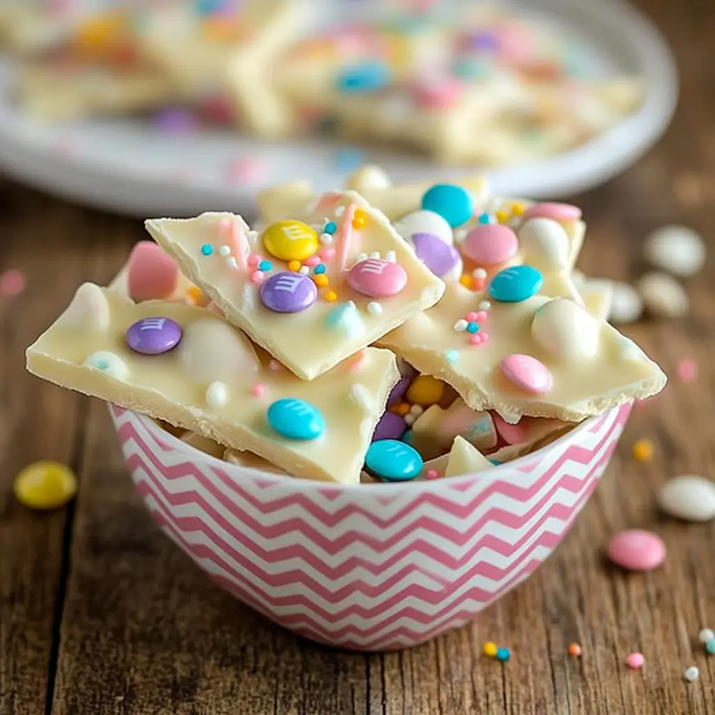 A quick and festive Easter dessert made with just 3 simple ingredients. This no-bake white chocolate bark is fun, customizable, and perfect for gifting!